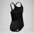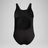 Swimwear that gets them there. Watch them fly through training wearing our sporty black Muscleback swimsuit with a blue plastisol graphic. Flexibility and freedom of movement come as standard with the sporty muscleback design, which is ideal for training. Cut from pilling-resistant Enduraflex fabric for better shape retention and higher chlorine resistance.