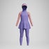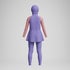 Take cover in style wearing our purple 3-piece Modesty Set, which features head-to-ankle coverage and leaf-print sleeves. Designed for juniors, it includes a swim-friendly head covering, a long-sleeve rash top with peplum bottom, and full-length leggings. Internal buttons connect the set for a secure fit, so your young swimmer can relax and enjoy the water. A bra shelf liner within the top provides support. Keep the fun going for longer with our EnduraBrite fabric, engineered with 4-way stretch and CREORA® HighClo™ for high chlorine resistance and superb shape retention. Body made of 82% Polyester, 18% Elastane (Creora® HighClo).