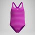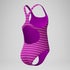 Breton stripes, but for the cool kids. Our purple stripy Medalist swimsuit will see them through seasons of lessons and beach days. And thanks to the shoulder-freeing medalist back, they’ll be comfy and free to move. Cut from EnduraBrite fabric, which provides higher chlorine resistance than standard swim fabrics.