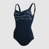 Style doesn’t stop at the water’s edge.Style doesn’t stop at the water’s edge. This classic swimsuit in navy is designed to enhance your natural shape. A sweetheart neckline featuring a white and navy print flatters the bust while the adjustable straps and underbust seam provide a comfortable, supportive fit. Made using our exclusive ShapeComprex Ultra power fabric which creates a smooth, feminine silhouette. Perfect for your regular workout, it includes Xtralife Lycra which lasts twice as long as standard swimwear fabric.