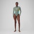 Women's Long Sleeve Zip Colourblock Swimsuit Green