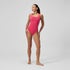 Go all-in wearing our pink Flex Band Swimsuit, designed with an integrated Swim Bra so you can glide through workouts without letting loose. The compressive fabric locks you in during high-intensity training, so you can wave goodbye to bounce and enjoy 360° support from the inner mesh bust cradle. Expansive dart seamlines accommodate all bust sizes, and a comfy, wide J-Fit elastic underband stretches to adjust to any changes in your shape. Quick-drying Endurance+ Max fabric offers high chlorine resistance and durability, so you can swim-wash-repeat.