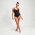 Flattering and stylish, our new black Shaping Swimsuit uses sheer mesh panels, premium shaping fabric and a V neck design to elongate the body, flattering your shape. Embossed gold branding upgrades your beach look, while the clip back and adjustable straps keep you comfortable and secure. Constructed seams and removable bra pads provide shape and bust support. Cut from our premium, comfortable body-shaping fabric, which works to smooth and contour the body, it’s ideal for the beach or pool. Offering higher chlorine resistance than standard swimwear fabrics, our new shaping fabric fits like new for longer with CREORA® HighClo™.