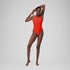 Power towards your fitness goals wearing our sleek new High Neck swimsuit. The high neckline offers a streamlined aesthetic, while the back straps are placed to allow you to train without feeling restricted. A shelf bra with removable cups offers bust support so you can focus on your swim. Regular workouts are no match for our new ultra-chlorine-resistant fabric. It includes XLANCE® technology with two-way stretch for a long-lasting performance fit.